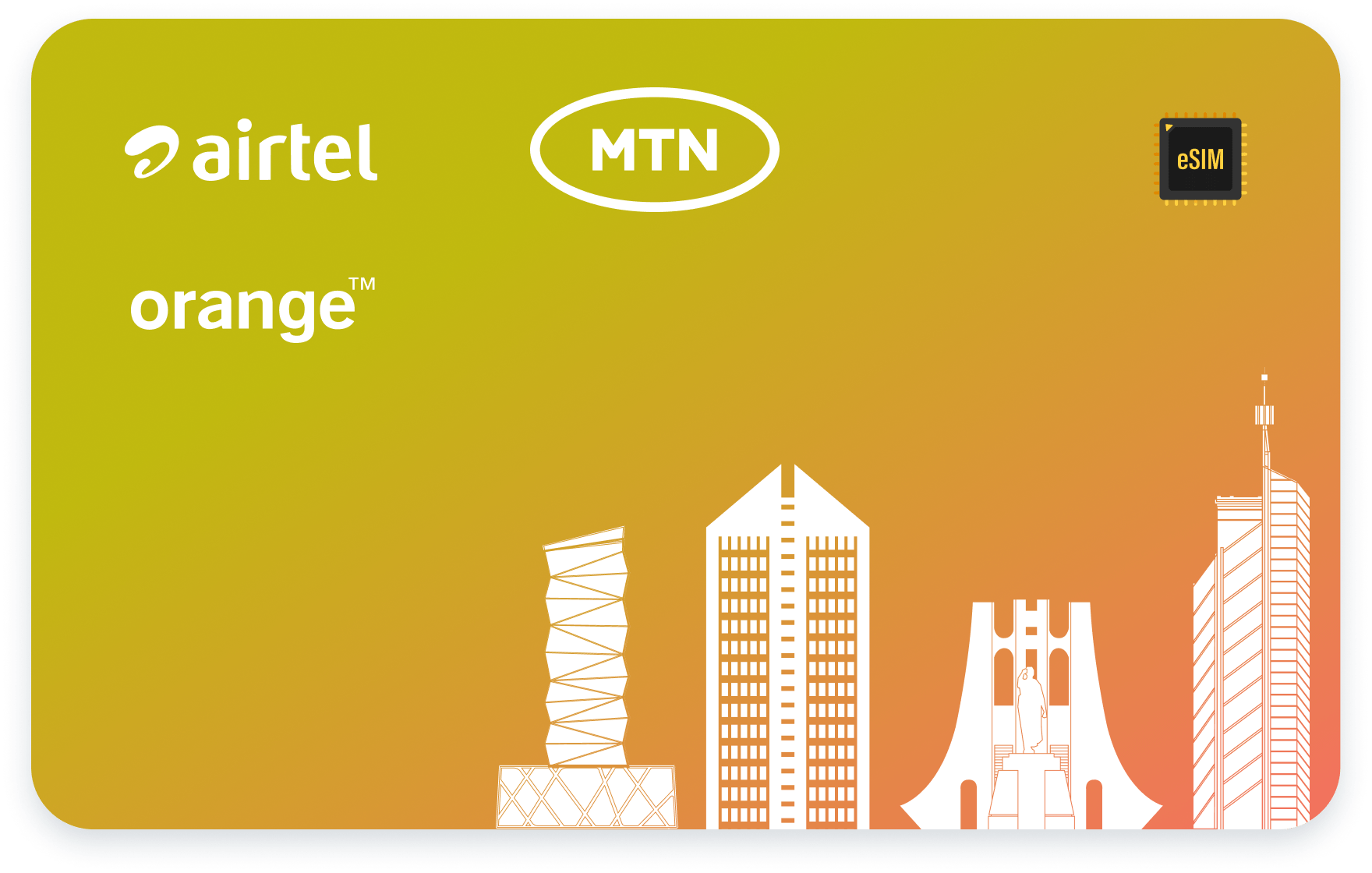 Purchase an international eSIM and eliminate roaming charges. Enjoy fast Internet in just a few minutes in Botswana, Burkina Faso, Central African Republic, Congo-Brazzaville, Congo-Kinshasa, Cote D’Ivoire, Eswatini, Gabon, Ghana, Guinea, Guinea-Bissau, Kenya, Liberia, Madagascar, Malawi, Niger, Nigeria, Rwanda, Senegal, Sierra Leone, South Africa, Uganda, Zambia.