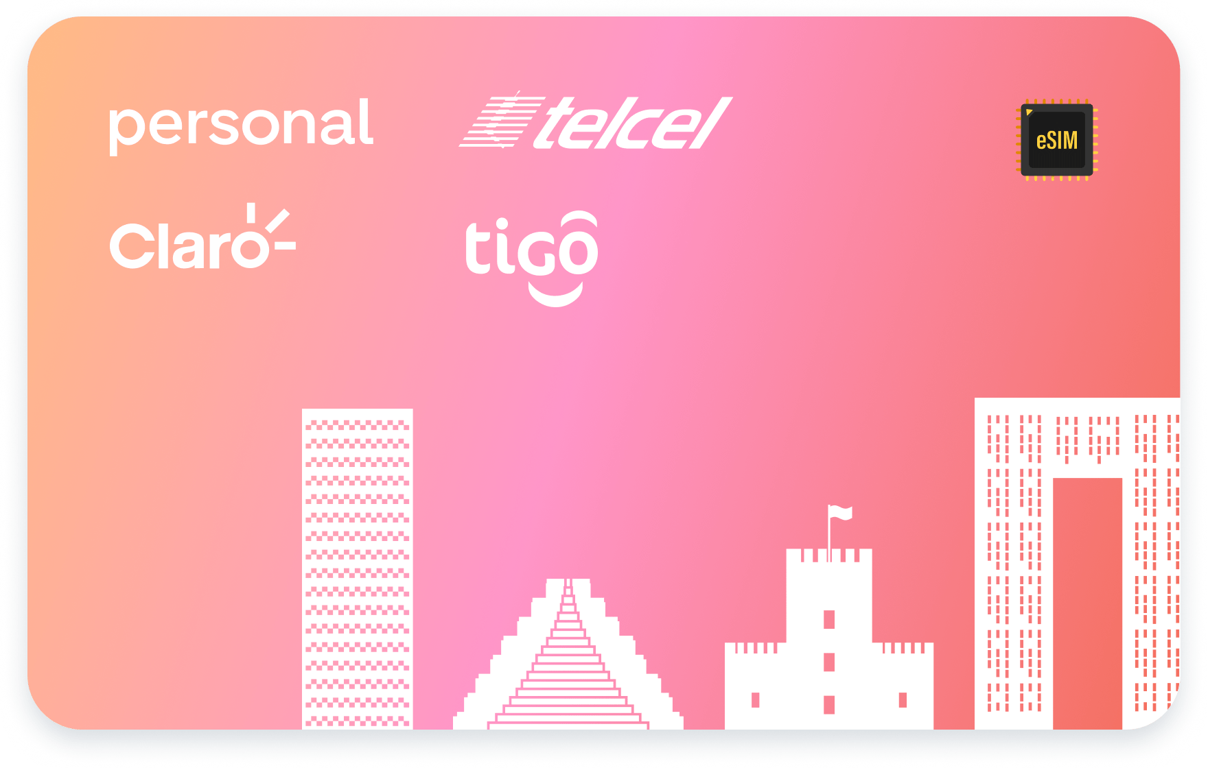 Purchase an international eSIM and eliminate roaming charges. Enjoy fast Internet in just a few minutes in Bolivia, Brazil, Chile, Colombia, Costa Rica, Dominican Republic, Ecuador, El Salvador, Guatemala, Honduras, Mexico, Nicaragua, Panama, Paraguay, Peru, Venezuela.